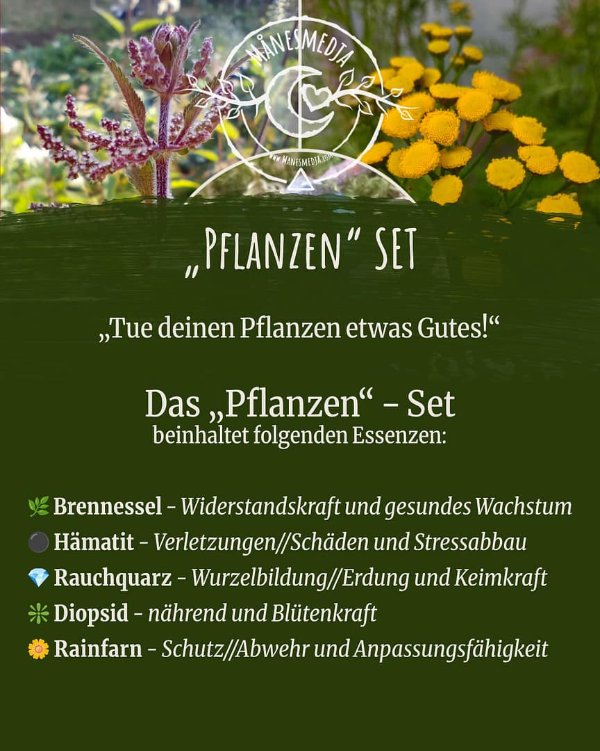 Das Set ist eine kleine Selektion aus unserem gesamten Sortiment, es eignen sich aber im Prinzip alle unsere Essenzen, um den Pflanzen etwas Gutes zu tun.